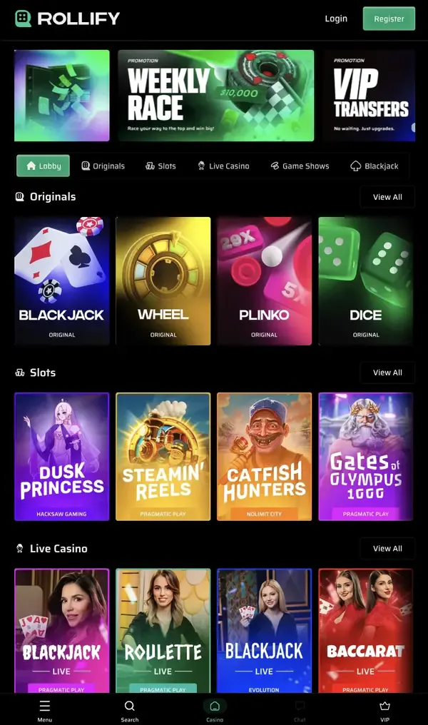 Μετά την εγγραφή, μπορείς να κάνεις κατάθεση και να παίξεις άμεσα στο Rollify Casino. Αν αργότερα αποφασίσεις να ενεργοποιήσεις άλλη προσφορά, δες promotions όπως Weekly Race, Pragmatic Drops & Wins και το Daily Rollbox Challenge. Η δεύτερη επιλογή Rollify bonus χρησιμοποιείται συχνά από παίκτες που προτιμούν συνεχιζόμενες ανταμοιβές αντί για ένα εφάπαξ match.
